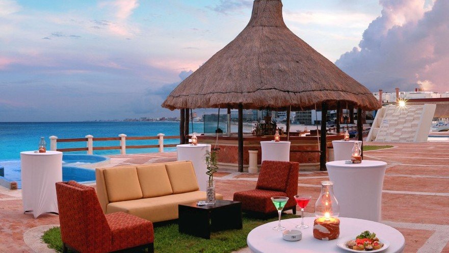 Welcome to KrystalCancun.com® Krystal Cancun - Cancun Mexico - Beach Resort The Krystal Cancun offers the best of both worlds. It is in the prime area of Punta Cancun — the heart of the activities and entertainment district of Cancun — yet once you step through our  doors, leave the hustle and bustle of the world behind as you relax on our stretch of white sand beach, take a dip in our hotel's panoramic pool, or enjoy a massage at the spa or even better,  abandon yourself in our beach bali beds. Everything you could need or want is at your fingertips and our goal is to ensure your ultimate relaxation. Our resort's stunning rooms and suites have been designed for every kind of traveler in mind, from our Family Rooms, which provides more space, to our ocean view guest rooms, to our  Suites —including the Master and Presidential  Suites which have their own private pools! We'll tantalize your palate with a wide range of cuisines in our three restaurants, cool your thirst at our three bars, ease your wallet with our affordable all-inclusive plan, and even handle all of  the details for your meeting, conference, wedding, or group event. When it's time to get away from it all, come to Cancun and let us pamper you at the Krystal Cancun.   Hotel Amenities The Krystal Cancun resort rises above the Caribbean Sea, within 1 block of nearby restaurants, shopping malls, nightlife, and the Cancún Convention Center. Guests have direct access to a public  white-sand beach with umbrellas for shade. This smoke-free resort provides a fitness center and a full-service spa that includes a sauna, steam room, and rooms for massage (surcharge). It also offers body treatments, facials, and a small  fitness room. Outdoor secure parking and valet parking are free. 5 meeting and conference rooms are on site. Guests booked in the All-Inclusive plan can enjoy set-menu dinners at select Cancún restaurants (transportation not included), and waived cover charge at Bulldog Café disco (drinks not  included; other restrictions may apply).