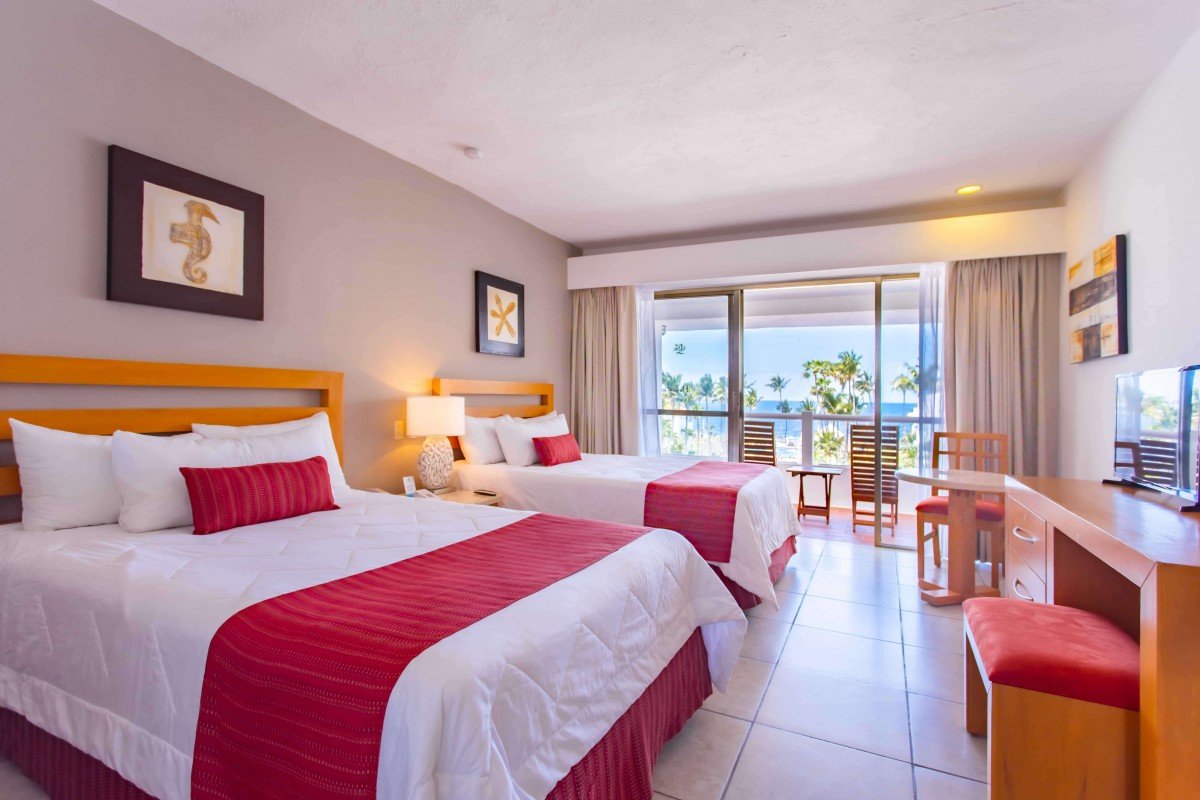 Have the rest you need in one of the 96 Club rooms located in the Club Tower of Marival Emotions Resort & Suites, Nuevo Vallarta, Riviera Nayarit. Each Club Room is 387 sq. ft. and has a king-size bed or two double beds, a private bathroom, a balcony or terrace overlooking the garden, the pool, or partial ocean views. The maximum capacity in each Club room is 4 people, including adults and children (maximum 3 adults).