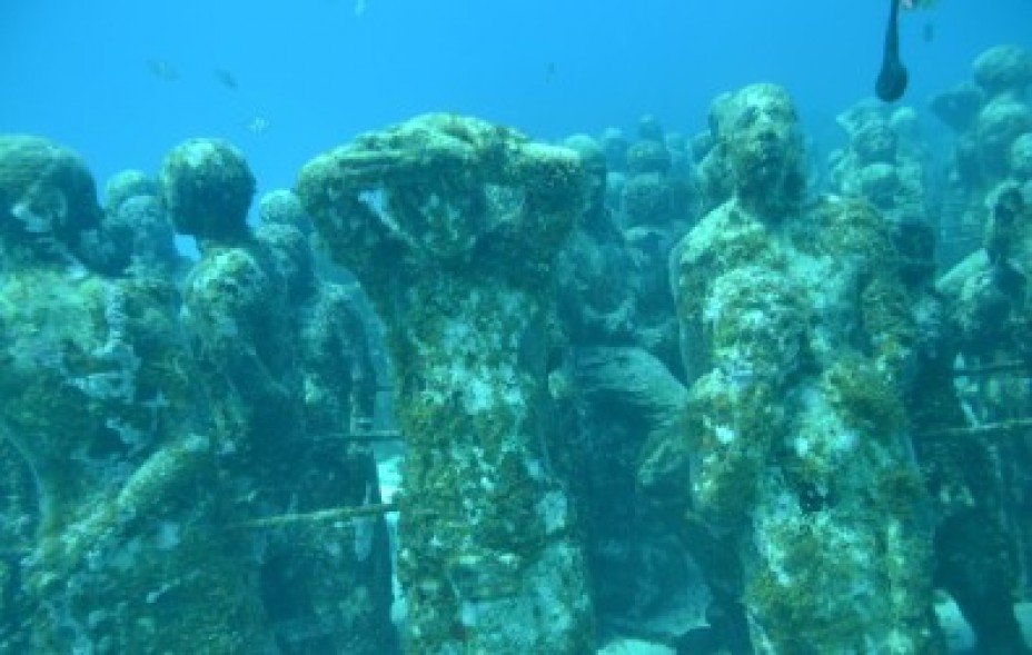 Las esculturas ocupan una superficie de 420 metros cuadrados y son referencias humanas como multitudes de personas. Es impresionate ver como cobran vida vida bajo el mar, siendo colonizadas por los arrecifes coralinos.