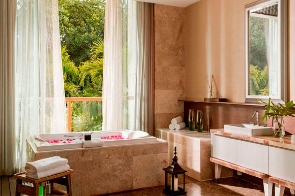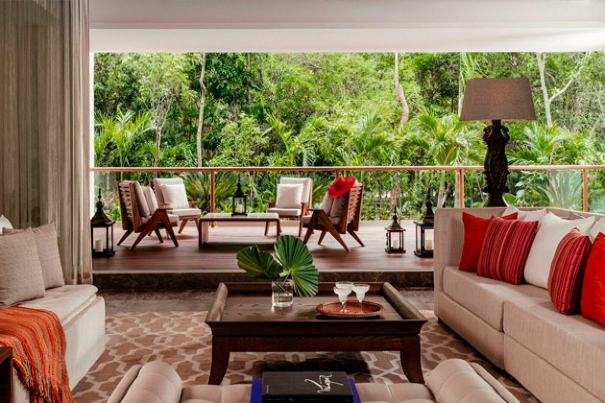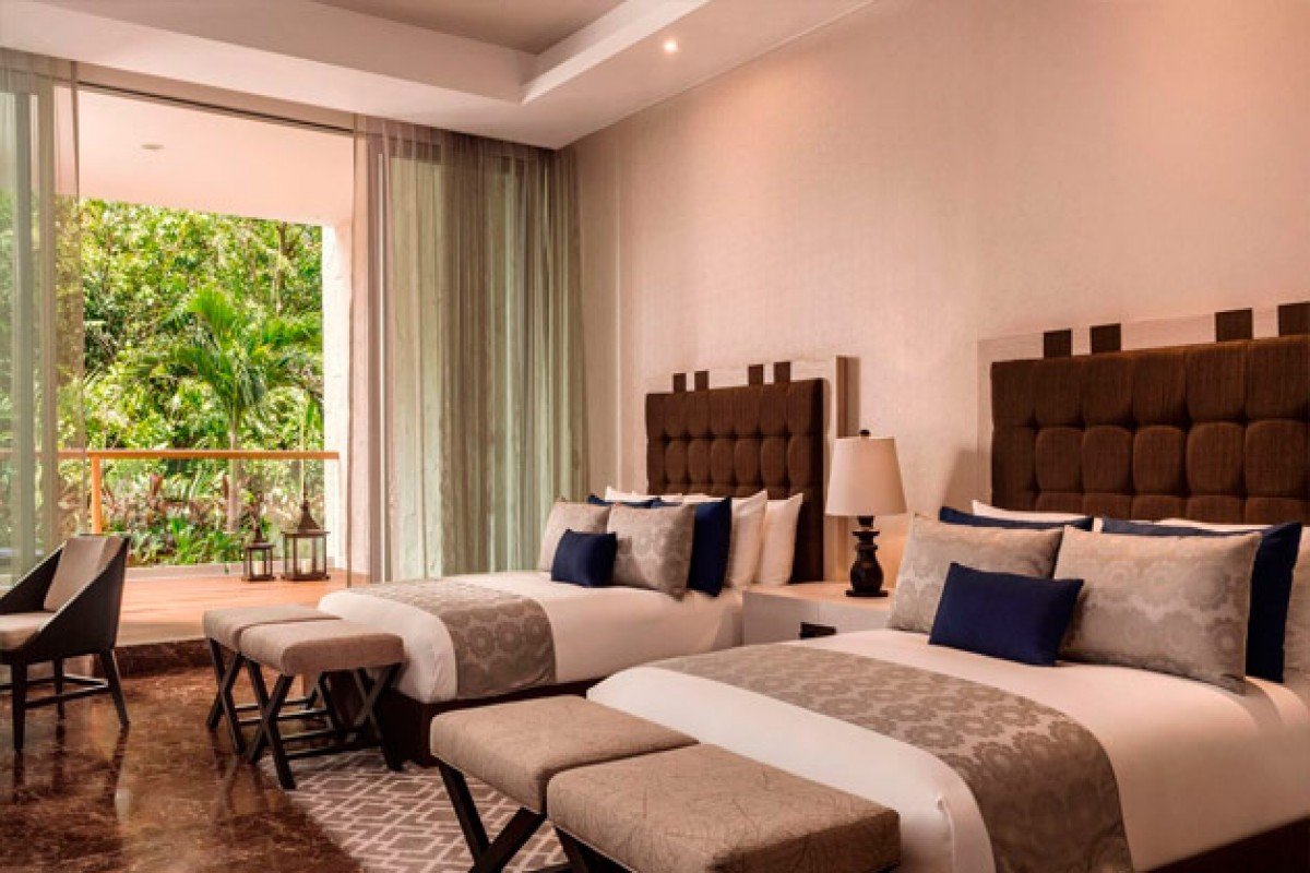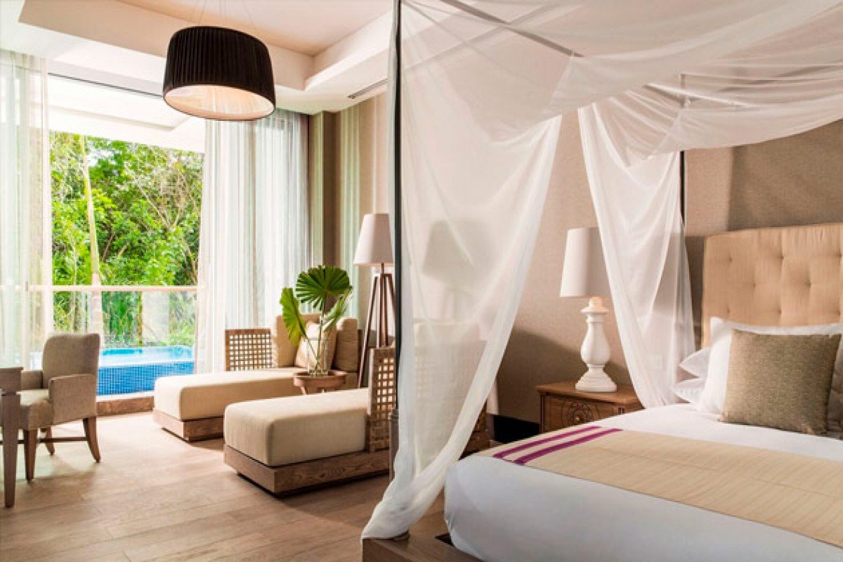 A Grand Luxxe Four Bedroom Residence This expansive space features a gourmet kitchen with oven, breakfast bar, wine bar, dining table for 10 people, and living room with TV. It has two terraces, one with a plunge pool and outdoor dining area. It features two bedrooms with king-size beds, and two bedrooms with double beds, as well as four and a half bathrooms and two Jacuzzi tubs. This unit also includes 5 TVs. Occupancy: 12 adults Type: Four Bedroom Residence Bed: Two King-Size Beds, Four Double Beds Bathrooms: Four and a half Bathrooms, Two Jacuzzi Tubs.