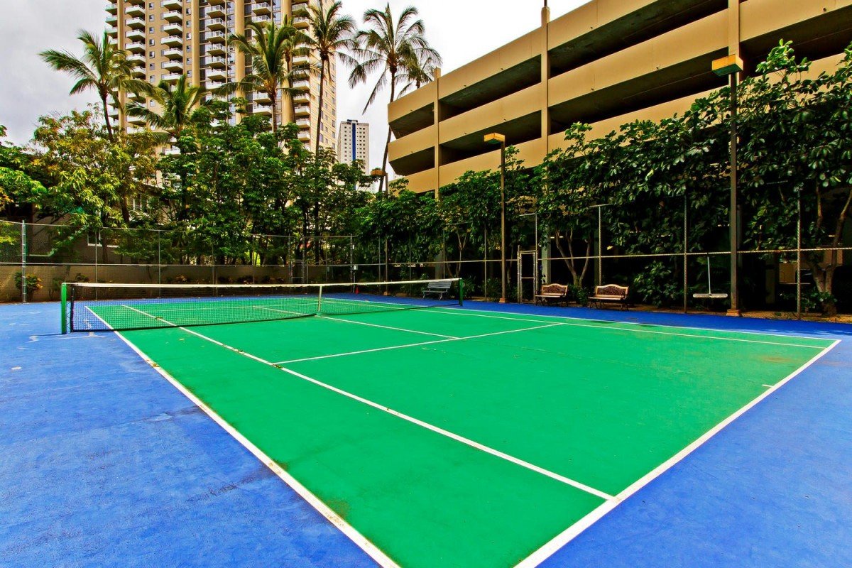 Amenities include a tennis court, BBQ grill and outdoor pool.